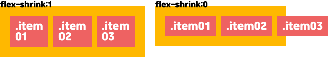 flex-shrink는 flex-grow와 반대로 감소 값을 결정한다. flex-basis나 width 설정되어 있다면 basis, width보다 작아질 수 있는지를 정한다.